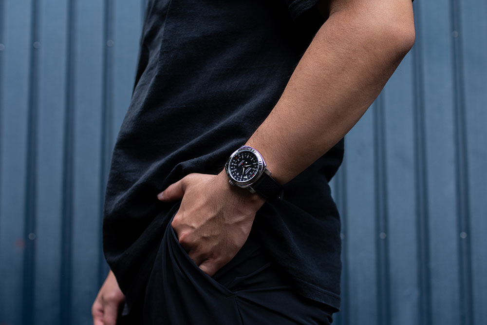 Equipped with a Sapphire Cystal, Rougged bezel, 316L squareface case design and a redesigned rubber strap. This watch is designed to be worn, beaten and endure everyday adventure.